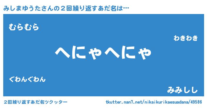 | ヘコむあだ名 | 『なまこ酢』『みしまゆうた(苦笑)』 |