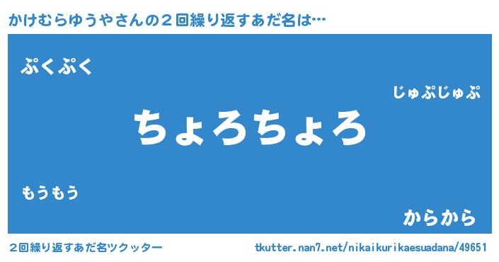 | ヘコむあだ名 | 『かけむらゆうや(爆)』『かけお』 |
