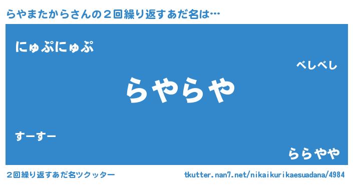 | ヘコむあだ名 | 『らやもー』『らやっちょ』 |