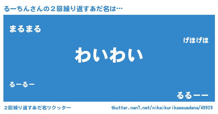 | 意味不明あだ名 | 『なめこ科るーちん属』『自称るーちん』 |