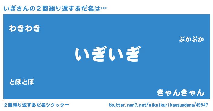 | 男性向けラノベタイトル風あだ名 | 『いぎの憂鬱』『転生したらいぎだった件』 |