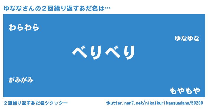 | 意味不明あだ名 | 『眠気覚ましガムゆなな味』『自称ゆなな』 |