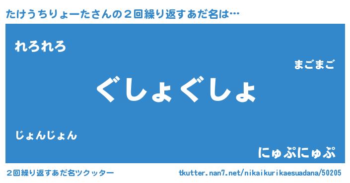 | ヘコむあだ名 | 『たけうちりょーた(遠い目)』『たけっ子』 |