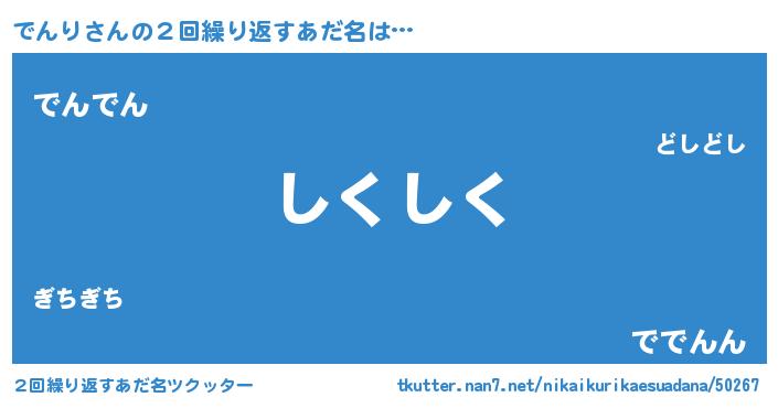 | 意味不明あだ名 | 『住所不定無職でんり(56歳)』 |