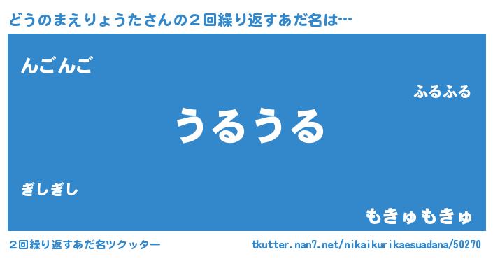| 欧米人風あだ名 | 『ウサインどうのまえりょうた』 |