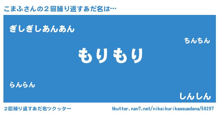| 男性向けラノベタイトル風あだ名 | 『Re:こまふから始める異世界生活』 |