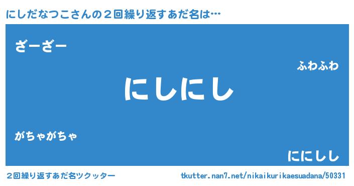 | ポケモン風あだ名 | 『ニシチュウ』『ニーシイ』 |