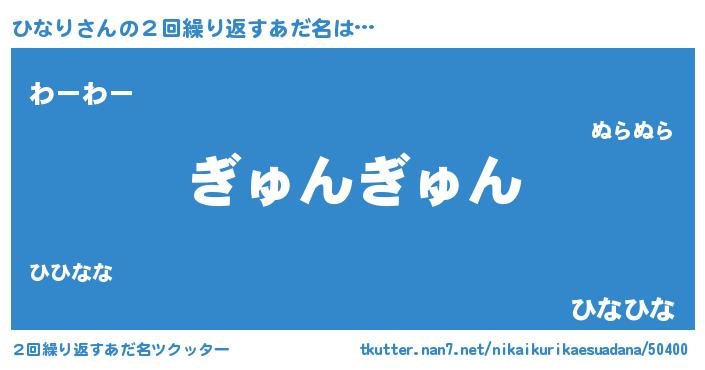 | 意味不明あだ名 | 『永久保存ひなり』『なめこ科ひなり属』 |