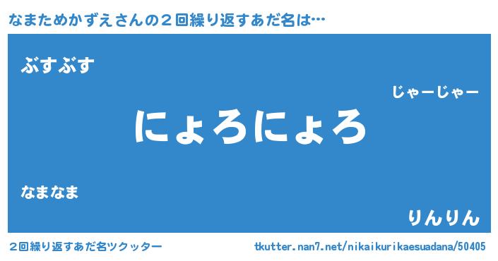 | 意味不明あだ名 | 『とにかく怪しいなまためかずえ』 |