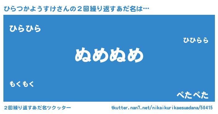 | ポケモン風あだ名 | 『ヒヒラツカヨウスケ』『ヒラチュウ』 |