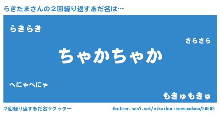 | 欧米人風あだ名 | 『らきたま・ステッグマイヤー』 |