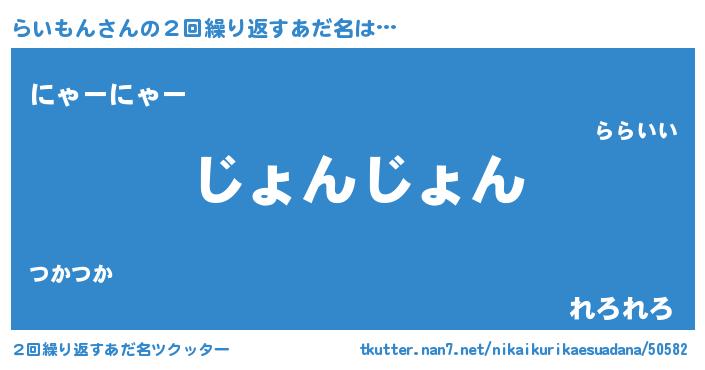 | 男性向けラノベタイトル風あだ名 | 『この素晴らしい世界にらいもんを!』 |