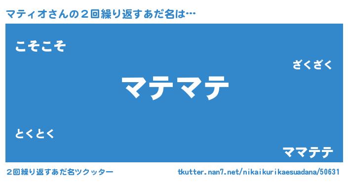 | 意味不明あだ名 | 『ペロリンマティオ』『永久保存マティオ』 |