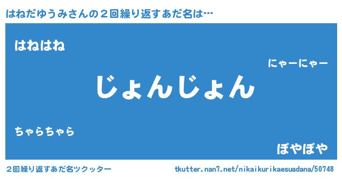 | 恥ずかしいあだ名 | 『プリティーはねだゆうみ』『はねちん』 |