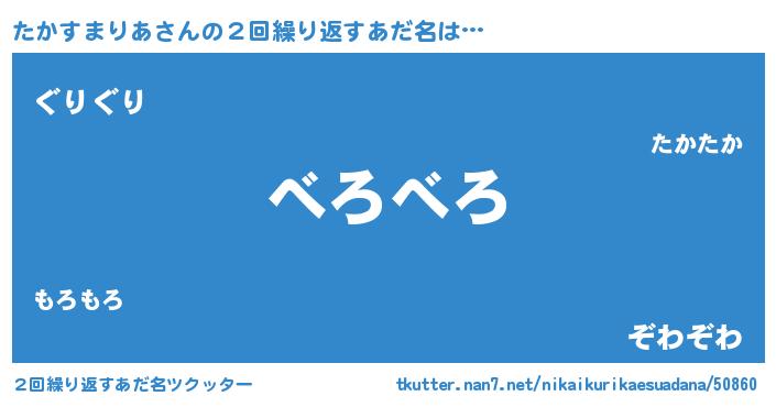 | ヘコむあだ名 | 『たかすまりあ(小並感)』『たかにゅー』 |