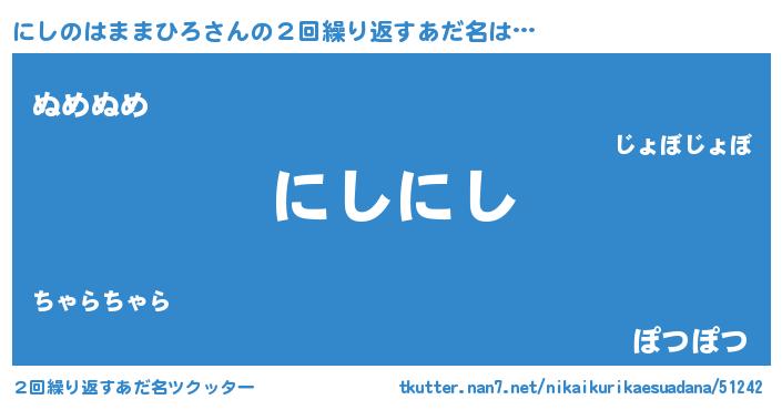 | 意味不明あだ名 | 『ペロリンにしのはままひろ』 |