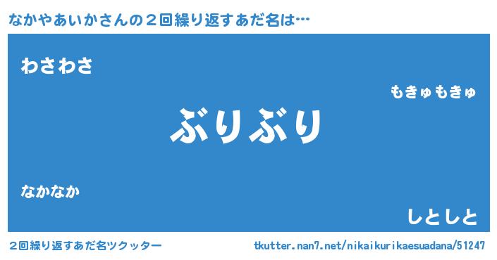 | ヘコむあだ名 | 『なかっふぃ~』『なかやあいか(小並感)』 |