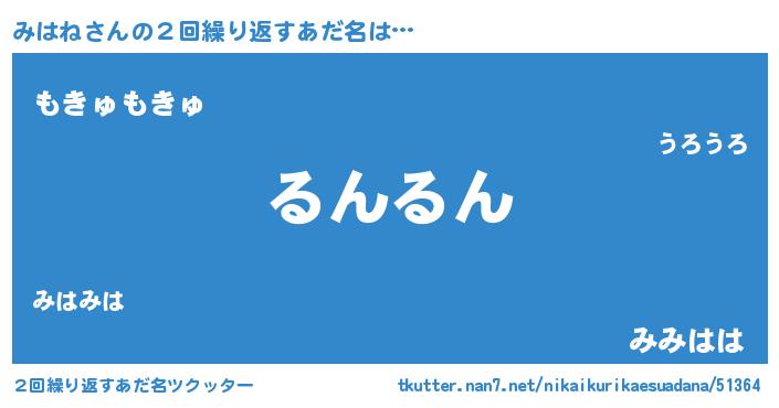 | 意味不明あだ名 | 『めかぶ科みはね属』『自称みはね』 |