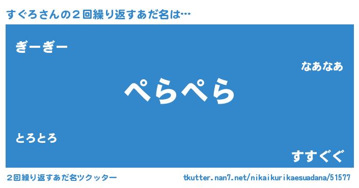 | ポケモン風あだ名 | 『スグゴンZ』『スックウザ』 |
