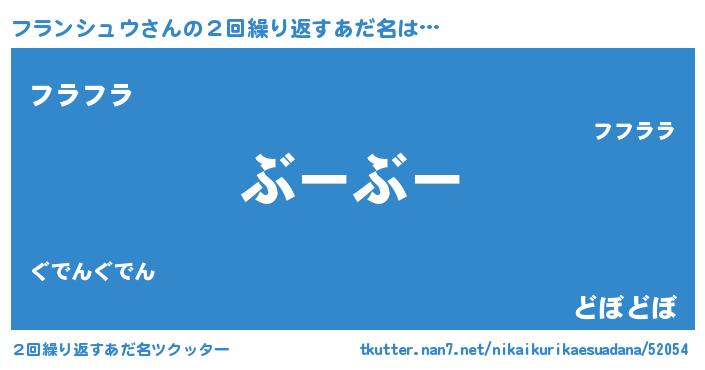 | 男性向けラノベタイトル風あだ名 | 『おまえをオタクにしてやるから、俺をフランシュウにしてくれ! 』 |