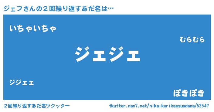 | ヘコむあだ名 | 『ジェふぇ~』『ジェぷりん』 |