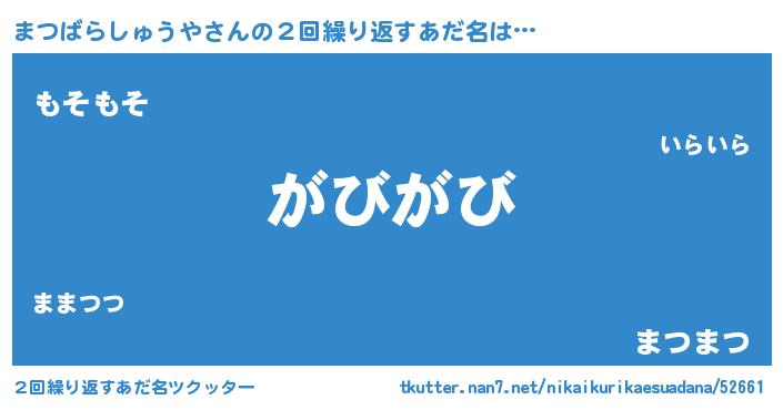 | ヘコむあだ名 | 『まつばらしゅうや(笑)』『まつもー』 |