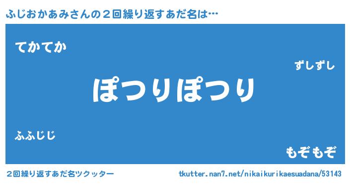 | 肩書あだ名 | 『ふじおかあみ教授』『ふじおかあみ船長』 |