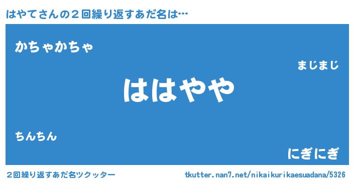 | 欧米人風あだ名 | 『はやてクリステル』『ウサインはやて』 |