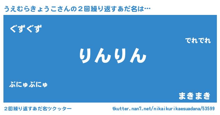 | 可愛いあだ名 | 『うえぷりん』『うえむらきょうこママ』 |