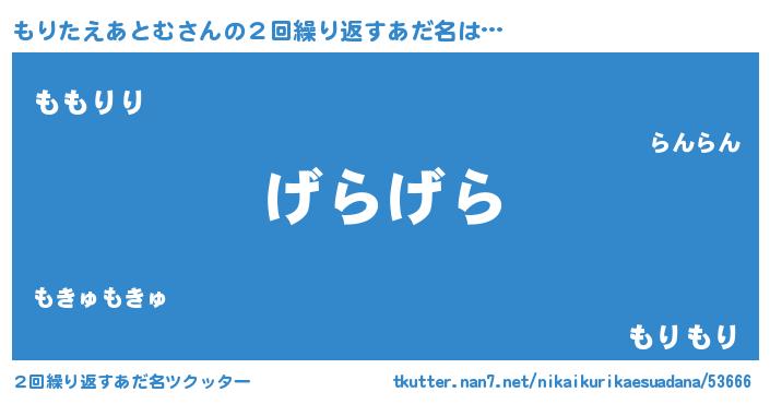 | ヘコむあだ名 | 『もりたえあとむ(爆)』『酢こんぶ』 |