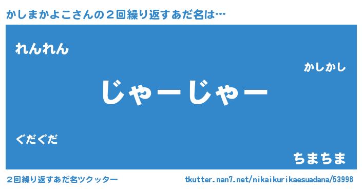 | ヘコむあだ名 | 『かしもー』『かしまかよこ(苦笑)』 |