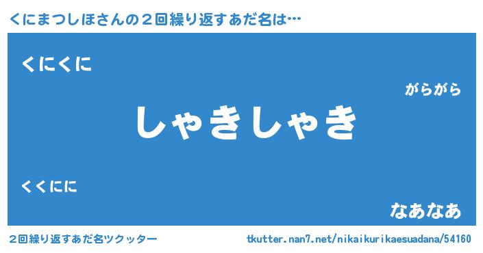 | 恥ずかしいあだ名 | 『プリティーくにまつしほ』『くにちん』 |