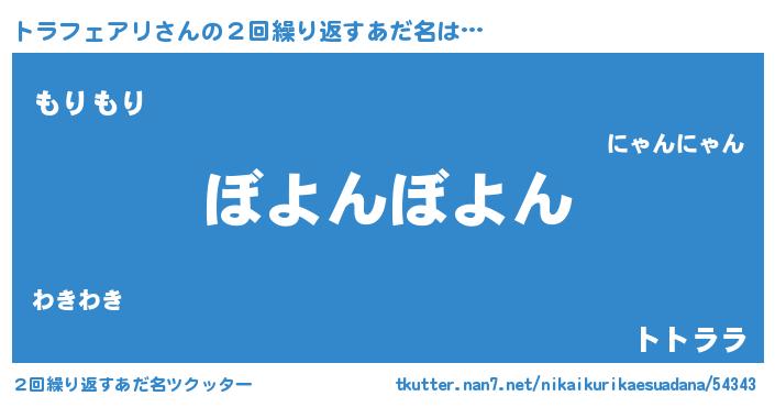 | 女子向けラノベタイトル風あだ名 | 『死神トラフェアリの再婚』 |