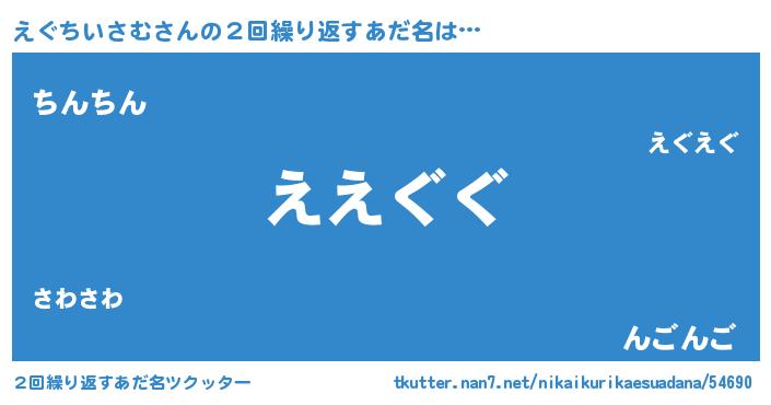 | 意味不明あだ名 | 『えぐちいさむフォーエバー』 |