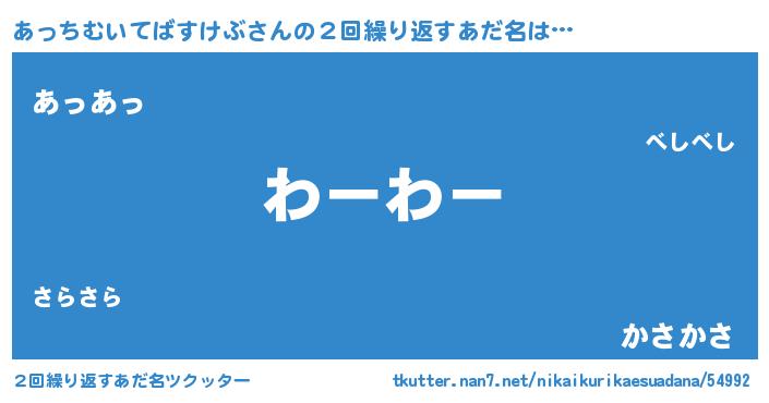 | 欧米人風あだ名 | 『トリンドルあっちむいてばすけぶ』 |