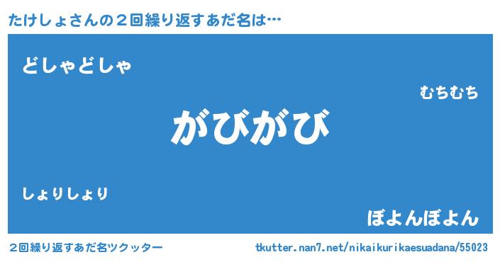| 意味不明あだ名 | 『永久保存たけしょ』『自称たけしょ』 |