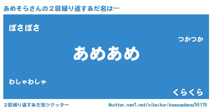 | ヘコむあだ名 | 『あめにー』『あめそら(笑)』 |