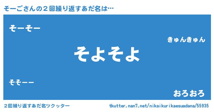 | 意味不明あだ名 | 『住所不定無職そーご(86歳)』 |