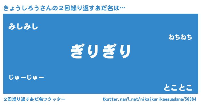 | ヘコむあだ名 | 『きょうしろう(笑)』『きょお』 |