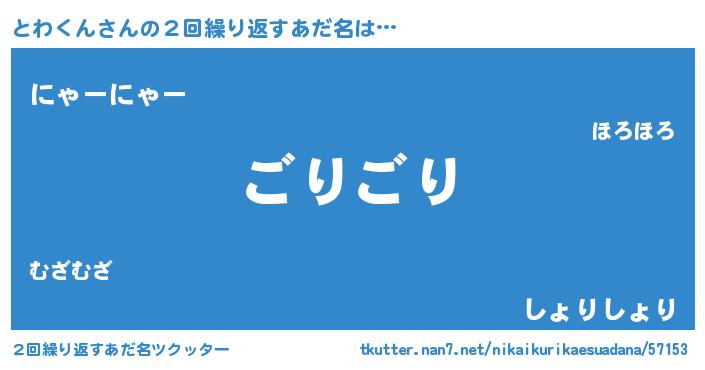 | ヘコむあだ名 | 『とわくん(遠い目)』『とわっちょ』 |