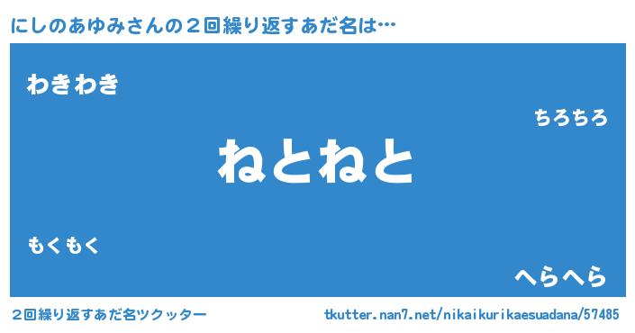 | ポケモン風あだ名 | 『ヒニシノアユミ』『ニシキング』 |