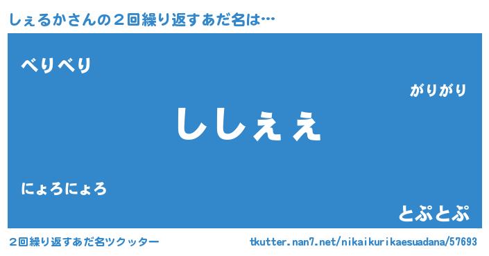 | 欧米人風あだ名 | 『しぇるかクリステル』 |