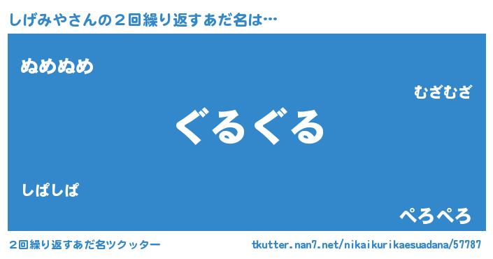| ヘコむあだ名 | 『しげみや(遠い目)』『しげを』 |