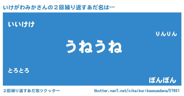 | ポケモン風あだ名 | 『ヒイケガワミカ』『イケガダネ』 |