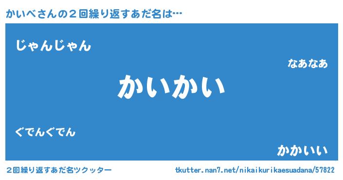 | 男性向けラノベタイトル風あだ名 | 『かいべの憂鬱』『魔弾の王とかいべ』 |