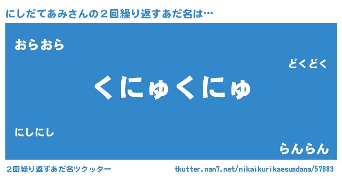 | ヘコむあだ名 | 『にしだてあみ(爆)』『にしを』 |