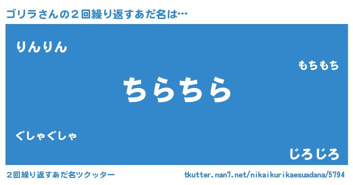 | 意味不明あだ名 | 『たけのこ科ゴリラ属』『自称ゴリラ』 |