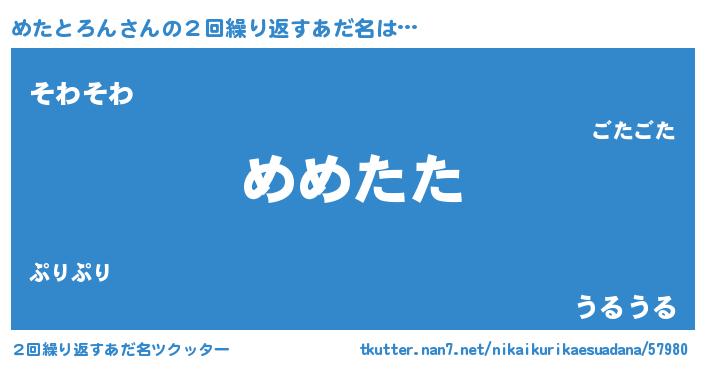 | 意味不明あだ名 | 『めたとろんフォーエバー』 |