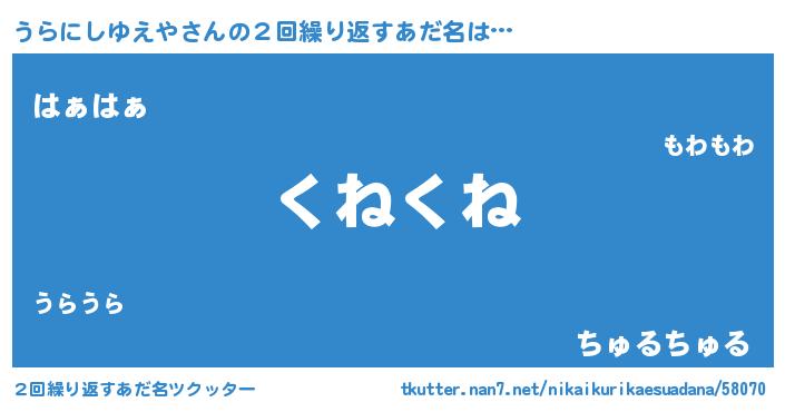 | 意味不明あだ名 | 『永久保存うらにしゆえや』 |