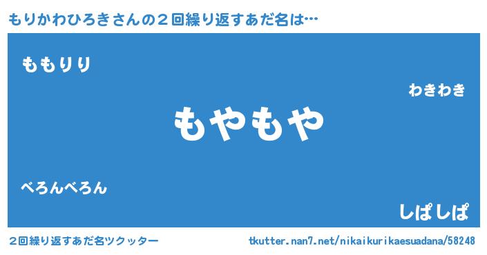 | 男性向けラノベタイトル風あだ名 | 『Re:もりかわひろきから始める異世界生活』 |